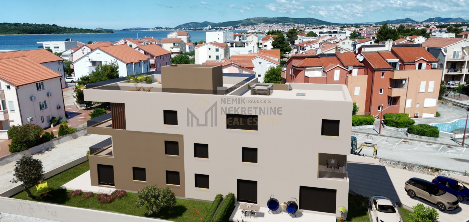 Zum Verkauf steht eine moderne 2,5-Zimmer-Wohnung mit einer Gesamtfläche von 80,55 m2, gelegen im ersten Stock eines Neubaus mit insgesamt zwei Etagen in einem ruhigen Teil von Vodice, Srima.