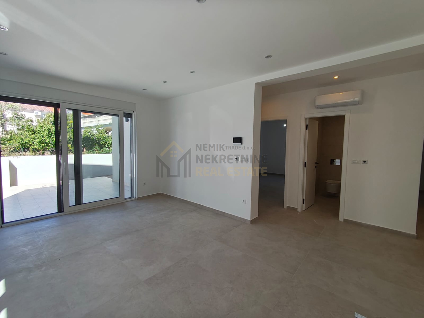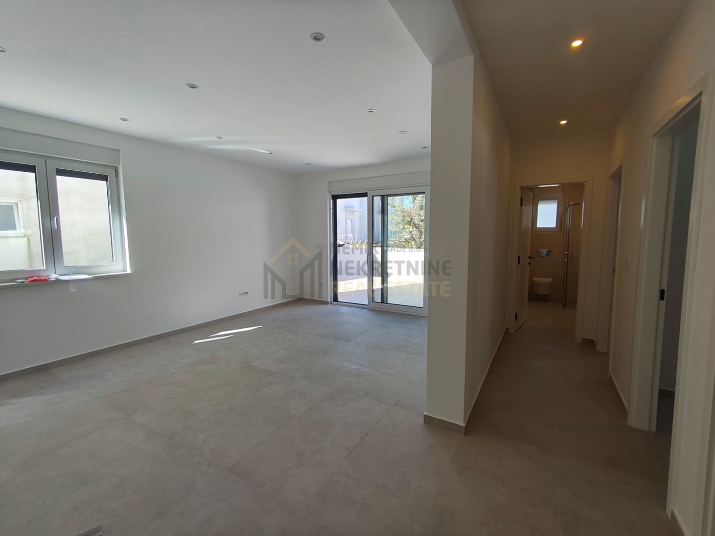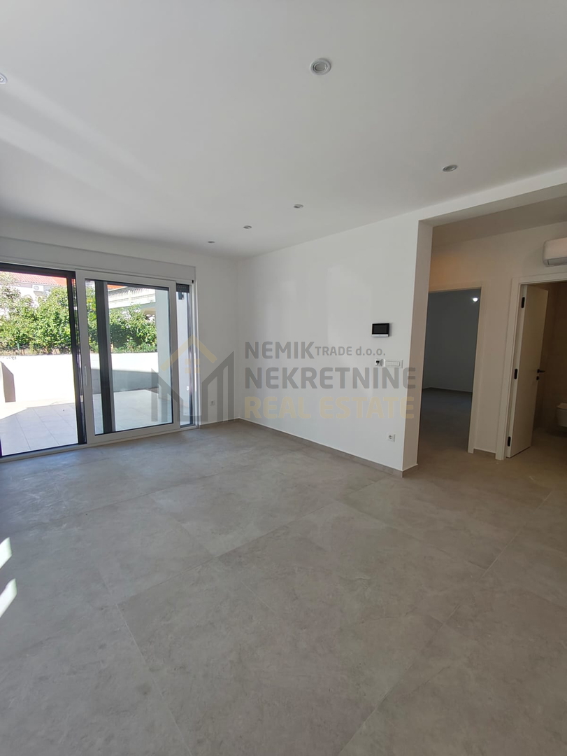For sale is an apartment, type 2.5-room (2S+DB), located on the ground floor of a one-story building, with a total area of 94 m2 and a garden of 55.11 m2. The apartment is situated in Vodice, built in 2024.