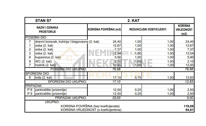 Prodaje se posljednji prostrani 3,5-sobni stan oznake S7 površine 119,08 m2, smješten na drugom katu stambene zgrade s ukupno dva kata, u Srimi.